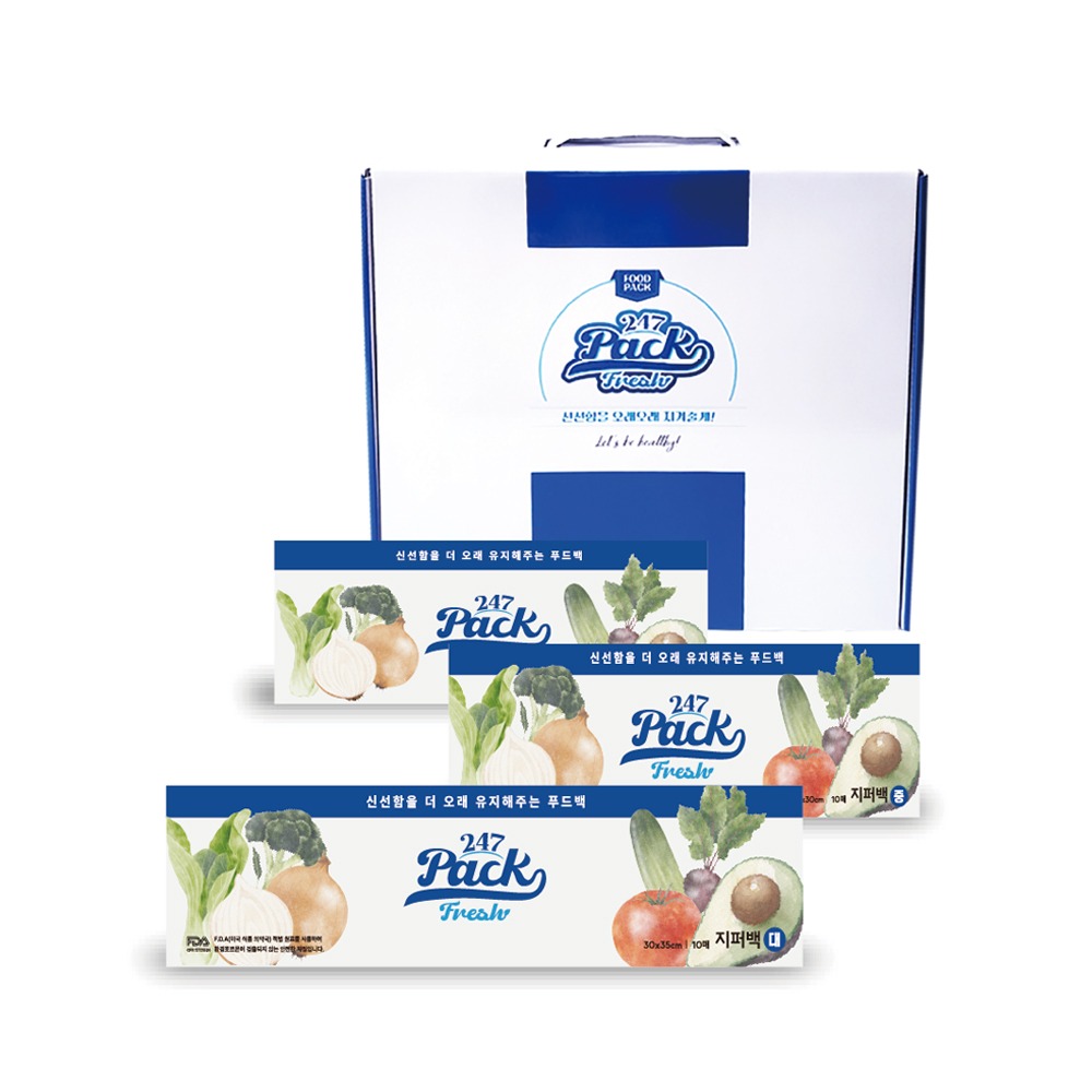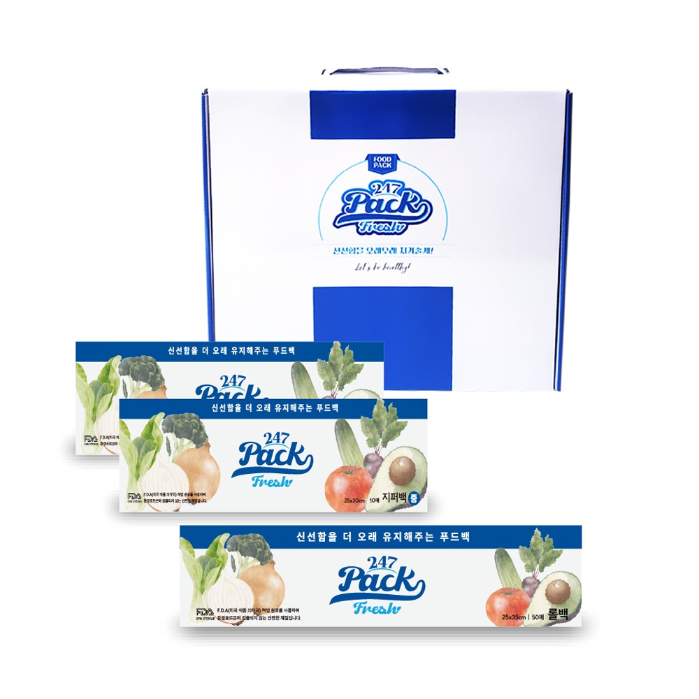 (백화점판매상품) 247 프레쉬팩 뉴프리미엄 지퍼백 중형 2팩×롤백 1팩 세트D