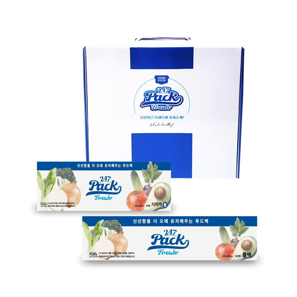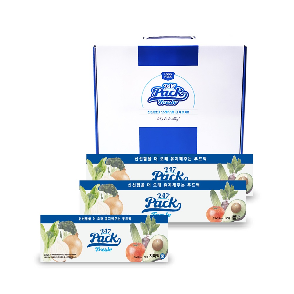 (백화점판매상품) 247 프레쉬팩 뉴프리미엄 지퍼백 중형 1팩×롤백 1팩 세트C