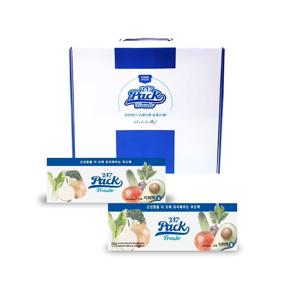 (백화점판매상품) 247 프레쉬팩 뉴프리미엄 지퍼백 (소형 1팩×중형 1팩) 세트A