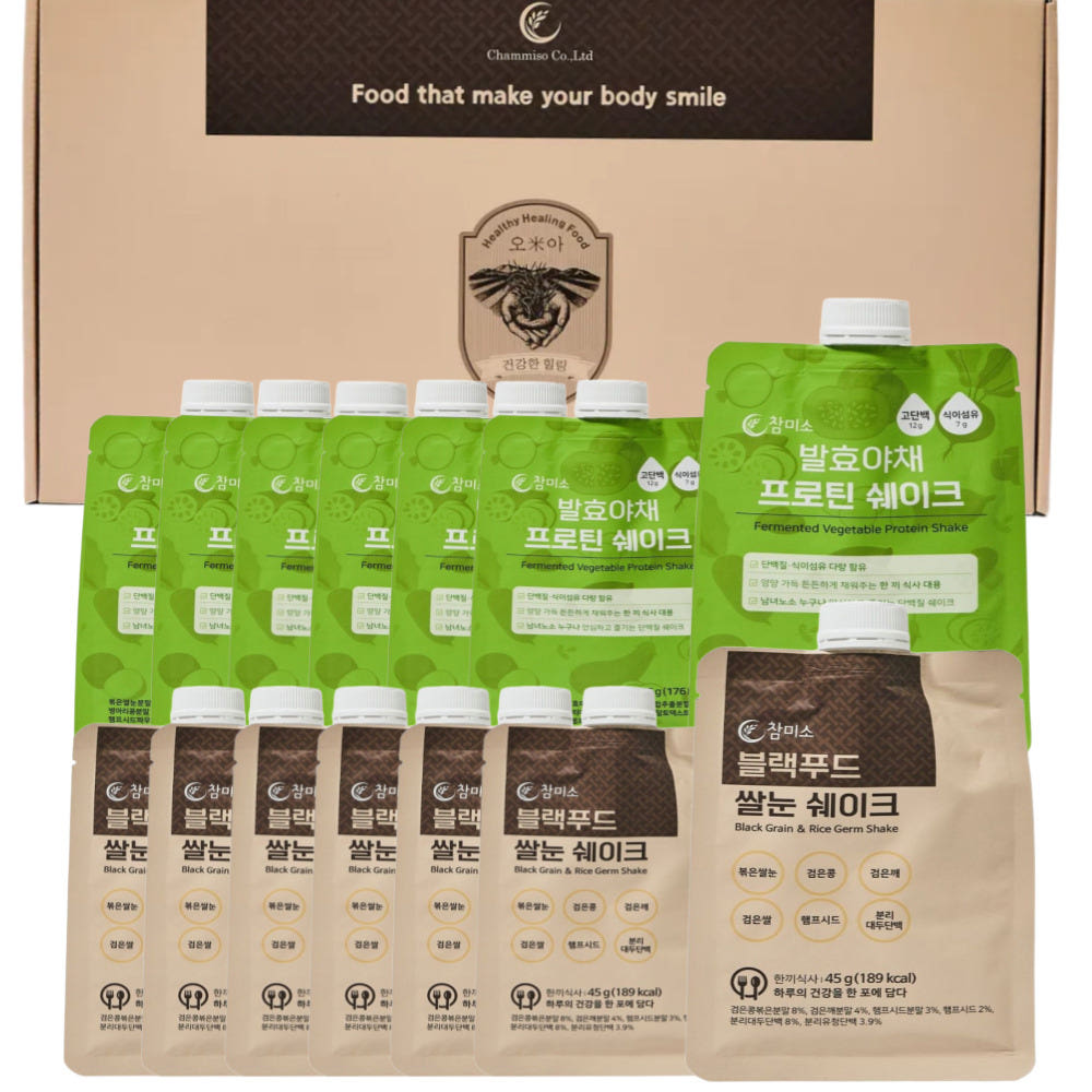 참미소 종합 쉐이크 선물세트 (발효야채 프로틴 쉐이크 7개입+블랙푸드 쌀눈 쉐이크 7개입)